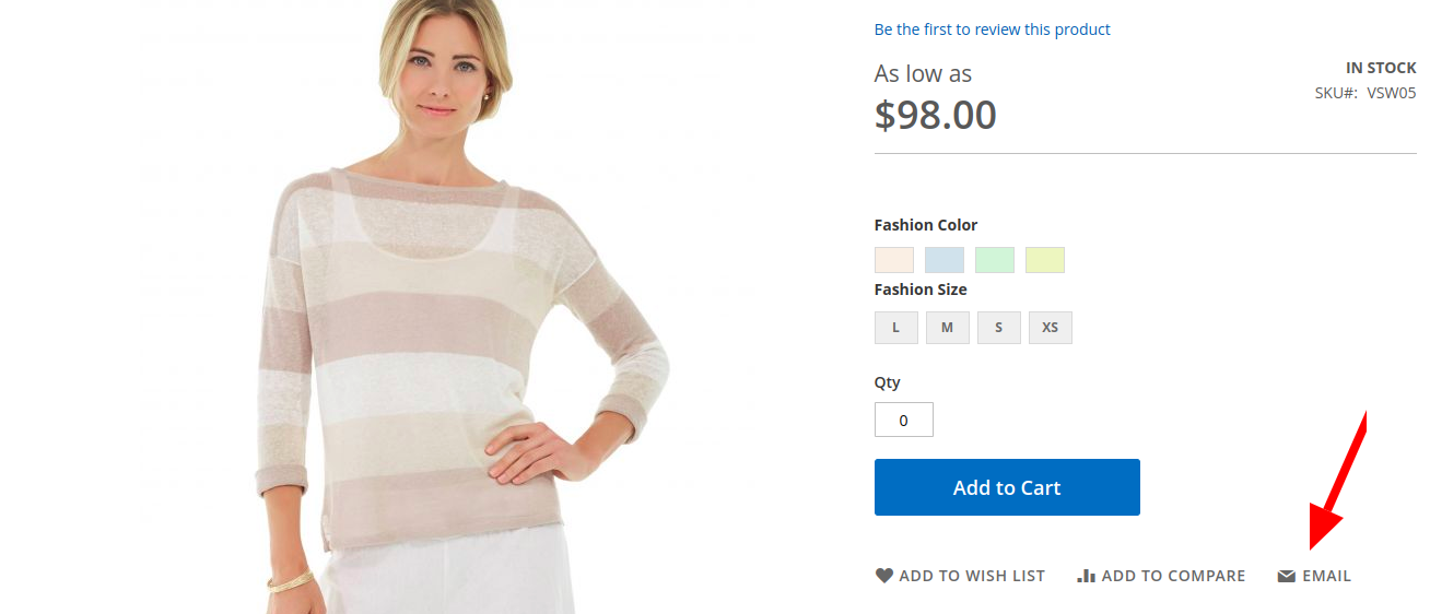 To expand the awareness of your brand, Magento 2 allows inviting products to friends via email by setting up the Refer Email to a Friend in the configuration. For the easier way, Email a Friend link appears along with an envelope icon instantly on the product page. Just clicking on the link, customers are navigated to the Email to a Friend page, then complete all information of the email. It is possible to send to multiple recipients; however, to avoid the spam, you should limit the number of sharing products in one hour and the number of recipients per sent email.